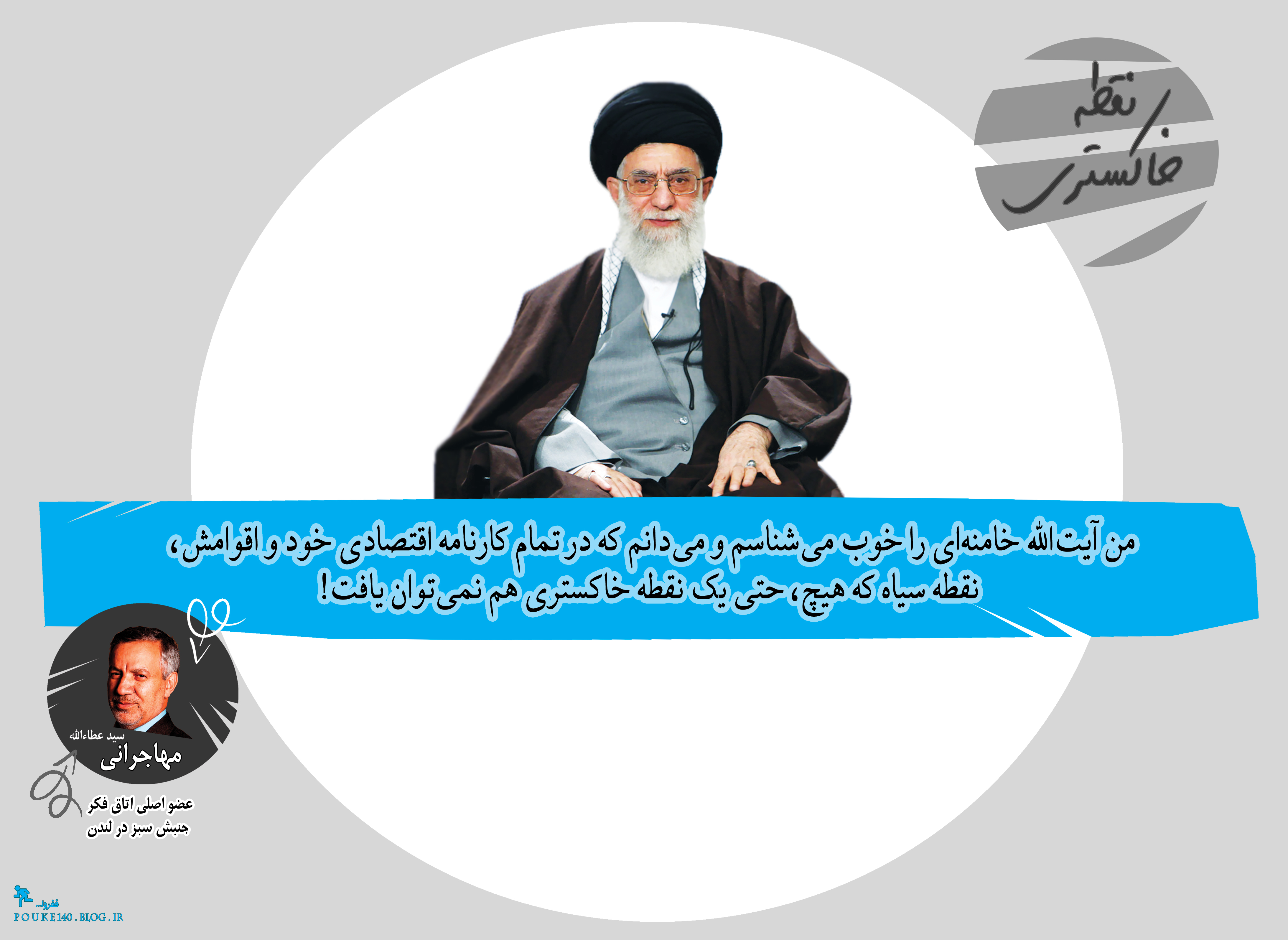 عطاالله مهاجرانی، وزیر فرهنگ دولت اصلاحات و از اعضای اتاق فکر جنبش سبز در سال 88، اعترافات جالبی در مورد رهبر انقلاب دارد. وی در یکی از سخنرانی های خود در جمع حامیان جنبش سبز در انگلستان ، در نقد روشهای مخالفت با نظام، دو راهبرد جنبش را، اشتباه دانسته و عقیده دارد تمرکز روی این دو مساله، بخاطر وضوح عدم واقعیتشان، ارزش سرمایه گذاری ندارد. این دو مورد یکی " استقلال بی نظیر جمهوری اسلامی" و دیگری "پاکدستی عجیب رهبرانقلاب اسلامی" است.